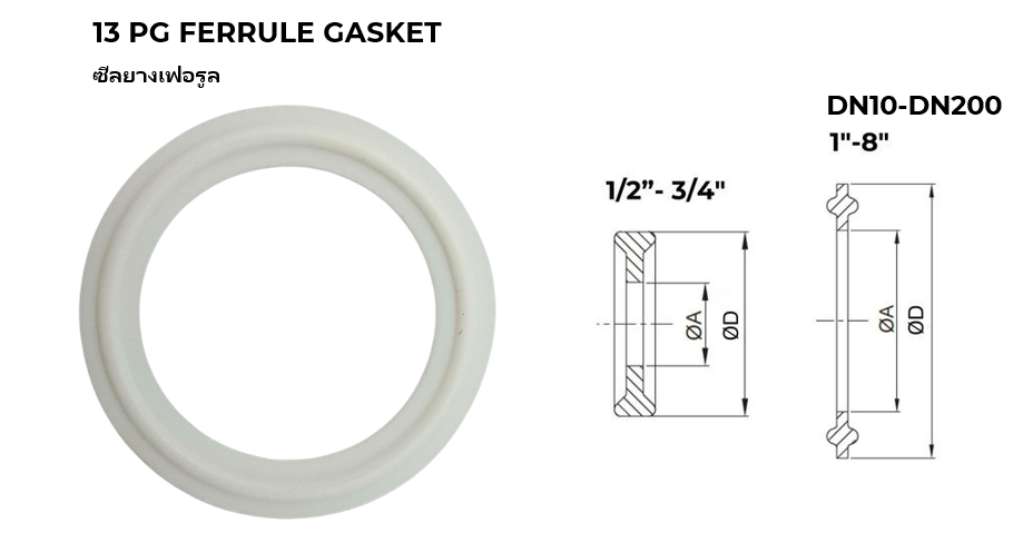 ซีลยางซิลิโคน , ซีลยางซิลิโคนฟู้ดเกรด ,ซีลยางอีพีดีเอ็ม ,ซีลยางเทปล่อน ,ซีลยางไวตั้น GASKET FERRULE , SEAL FERRULE เป็นซีลที่เหมาะสำหรับไลน์การผลิตอาหารและยามีหลากหลายวัสดุเหมาะกับการใช้งานในแต่ละประเภท ทั้งความร้อน ความเย็น กรด ด่าง เป็นต้น