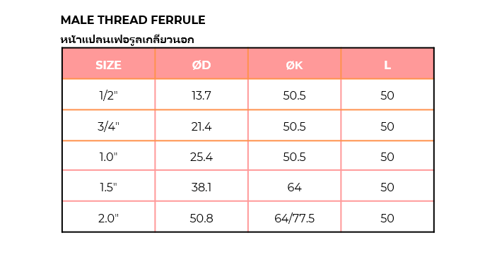 MALE THREAD FERRULE หน้าแปลนเฟอรูลเกลียวนอก เฟอรูลเกลียวตัวผู้ เฟอรูลเกลียว BSPT สามารถต่อกับวาวล์ ปั๊มน้ำ ปั๊มลมได้ สแตนเลสผ่านการขัดผิวภายในและภายนอกตามมาตรฐานการผลิตอาหารและยา