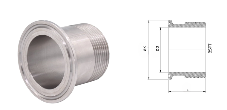 MALE THREAD FERRULE หน้าแปลนเฟอรูลเกลียวนอก เฟอรูลเกลียวตัวผู้ เฟอรูลเกลียว BSPT สามารถต่อกับวาวล์ ปั๊มน้ำ ปั๊มลมได้ สแตนเลสผ่านการขัดผิวภายในและภายนอกตามมาตรฐานการผลิตอาหารและยา