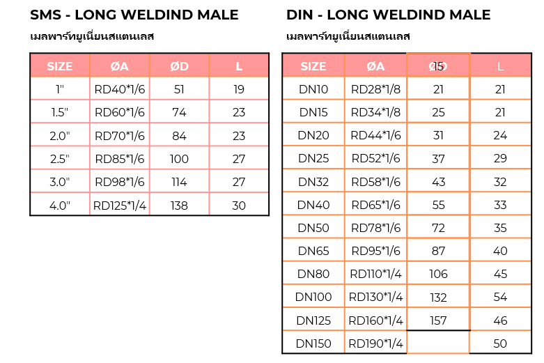 เมลพาร์ทยูเนี่ยนสแตนเลส ใช้สำหรับประกอบชุดยูเนี่ยน ผลิตจากสแตนเลส FOOD GRADE เหมาะสำหรับไลน์การผลิตอาหารและยาและผ่านการขัดผิวภายในและภายนอกตามมาตรฐานอาหารและยา(FDA)